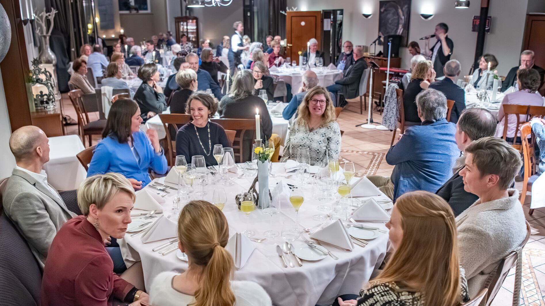 Gut gelaunte Gäste genießen Wintermahl