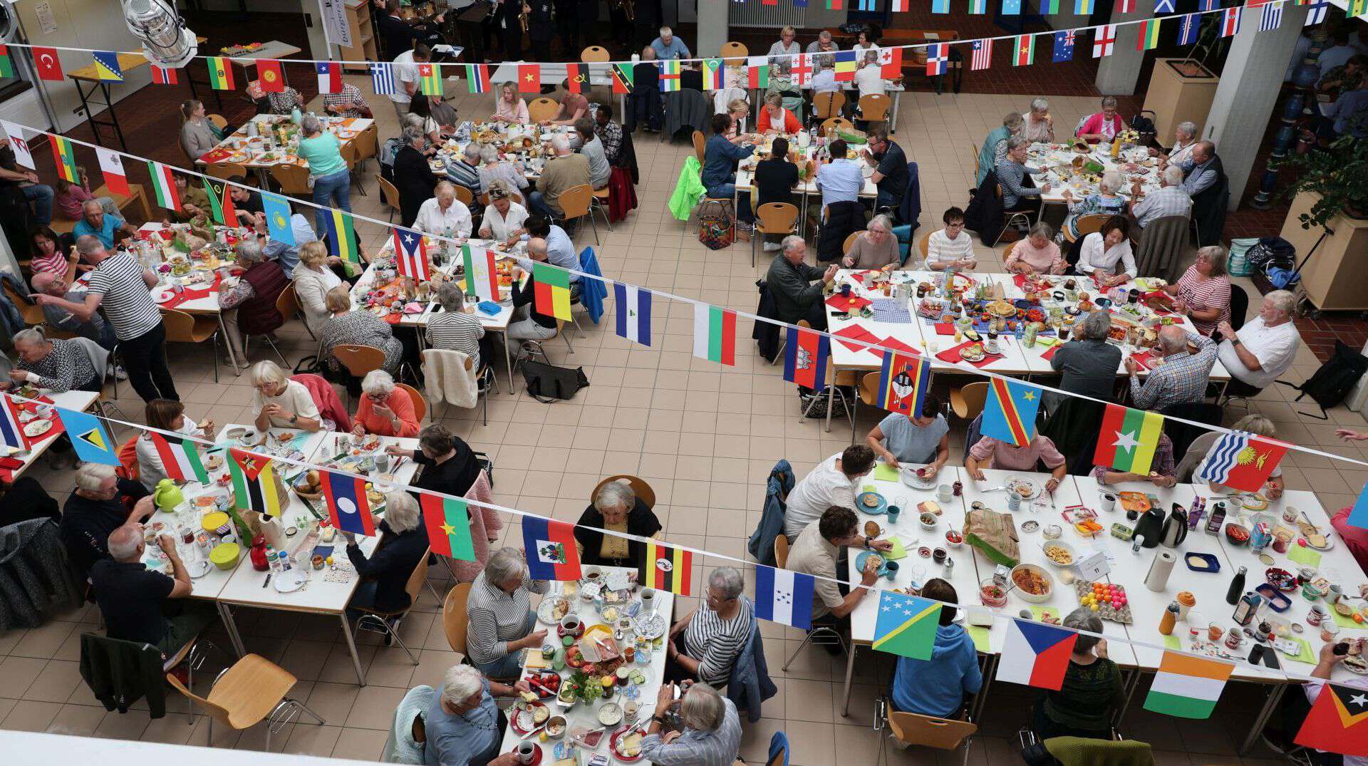 Nachdem schon am Samstagmittag die von Getränke Ellinghaus gesponsorten Bierzeltgarnituren – zusätzlich zu den in der Mensa vorhandenen Tischen – aufgestellt wurden, konnte der Vorstandsvorsitzende Martin Braun am Sonntagmorgen insgesamt ca. 180 Teilnehmer und Teilnehmerinnen zum Brunch begrüßen.